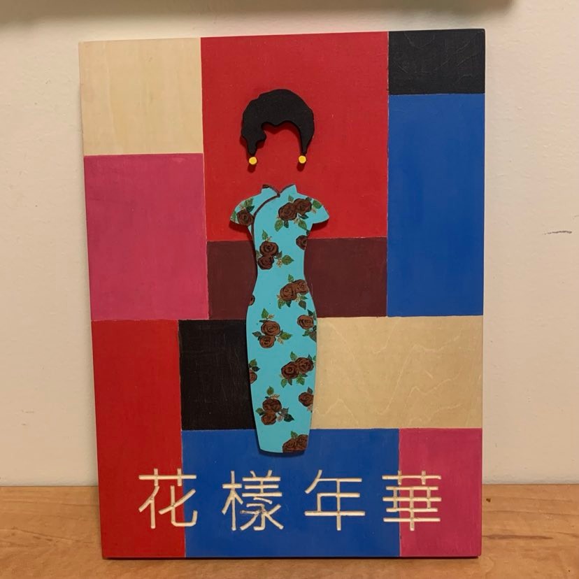 The following morning, after the completion of my pediatric shelf examination (which was actually not straightforward…), I went immediately to work on the project. I used the CNC machine to cut out the hair, earrings, and the qipao and its indentations for the inlaid roses. I then painted the dress and leaves.